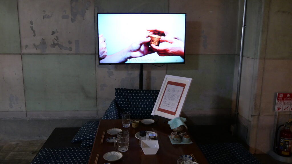 一方、清水伶自身も、尊厳死を選んだ母の最期を語った丹澤太良さん(日本尊厳死協会)のエピソードに合わせて、死の3日前に行ったという居酒屋を再現した新作映像インスタレーション《最後の晩酌》を出展。会場の一角で、太良さんの静かな語りが観客を包み込みました。